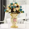 Surpreenda com este lindo e exclusivo arranjo de flores! O vaso é feito de porcelana vintage com acabamento em cor ouro fosco, para dar o toque final perfeito à sua decoração.
